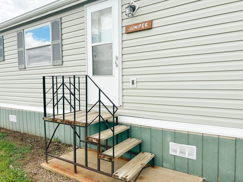 You have the option to stay in one of our "Tree Houses" or bring your own camper or RV. Tree Houses are private modular homes, equipped with everything you should need to have a wonderful time at camp. There are two bedrooms with full-size beds, one very small bedroom with a twin-sized bed, and pull-out bed in the living room sofa. The kitchen is equipped with a refrigerator, gas range, dishwasher, microwave, and coffee maker. The kitchen is furnished with dishes and basic cooking instruments. There's a bathroom with a shower/tub and there's even a laundry area. No need to bring linens or towels as those items are provided. The homes have central heat and air conditioning to provide you with an ideal indoor temperature during your stay.