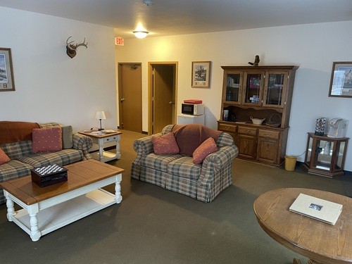 You will be staying in our “Prophet’s Chamber” here at camp. The master bedroom has a queen-sized bed, and the second bedroom has a queen-sized bed as well as a bunk bed. Your lodging has its own private bathroom, living room, and access to a shared back deck. The Prophet’s Chamber is equipped with bedding, pillows and towels for you to use during your stay. It also has a mini fridge, pod-style coffee maker, and microwave. If you need WiFi, the password is on the back of the door next to the bathroom. Simple scan the QR code and enter the password. Cell phone service is a bit spotty around here, so be prepared to be out of service at times.