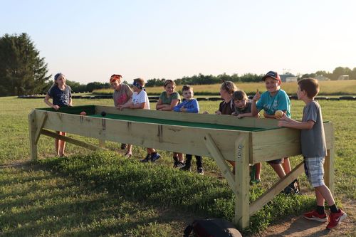 There are many ways to have fun at camp! Activities include the Archery, BB-Gun, Tomahawk, and Blow Gun ranges, and the Quad (located near the athletic field) which has some of our most popular outdoor games like Octoball, Giant Carpetball, and the bouldering wall. There is also a disc-golf course throughout the camp, an outdoor mini-golf course, as well as several hiking trails. The Sports Shack has any and all game equipment you might need! On hot days, the outdoor pool is a camper favorite.